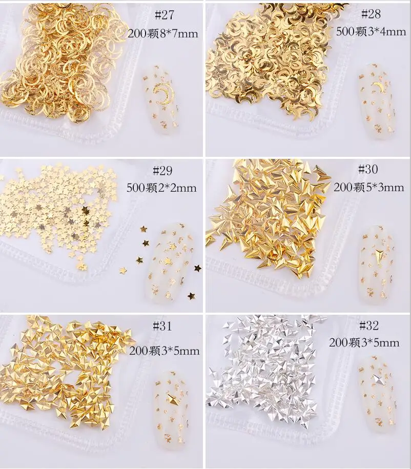 500200 шт. металлические заклепки для дизайна ногтей 3D Diy Полые гвоздики для нейл-арта (C12-C67) Звезда Луна тонкие тусклые полированные заклепки наклейки, JTY474