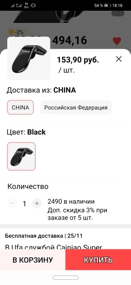 Страна: RU Color: Black Ships From: China Доставка: Cainiao Super Economy for Special Goods 09.01.2021