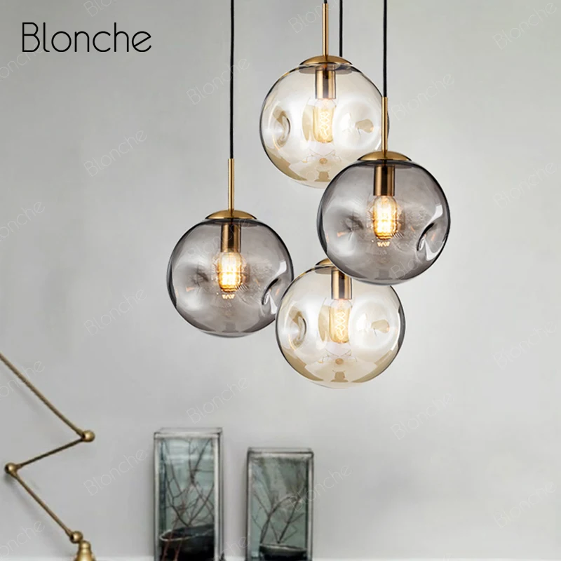Скандинавский подвесной светильник Modren E27, декоративное освещение в стиле лофт с пузырьками для столовой, бара, кафе, стеклянные шаровые подвесные светильники