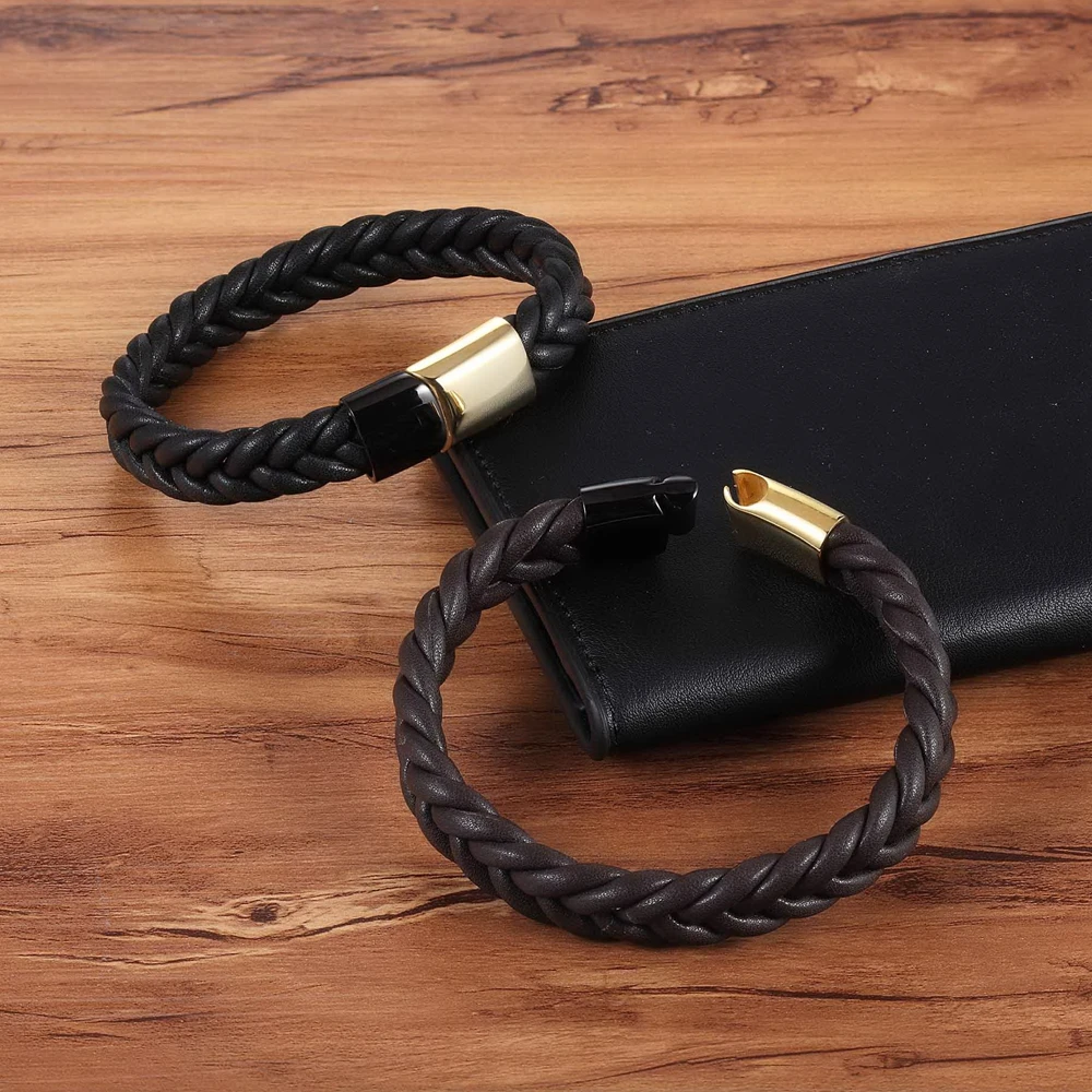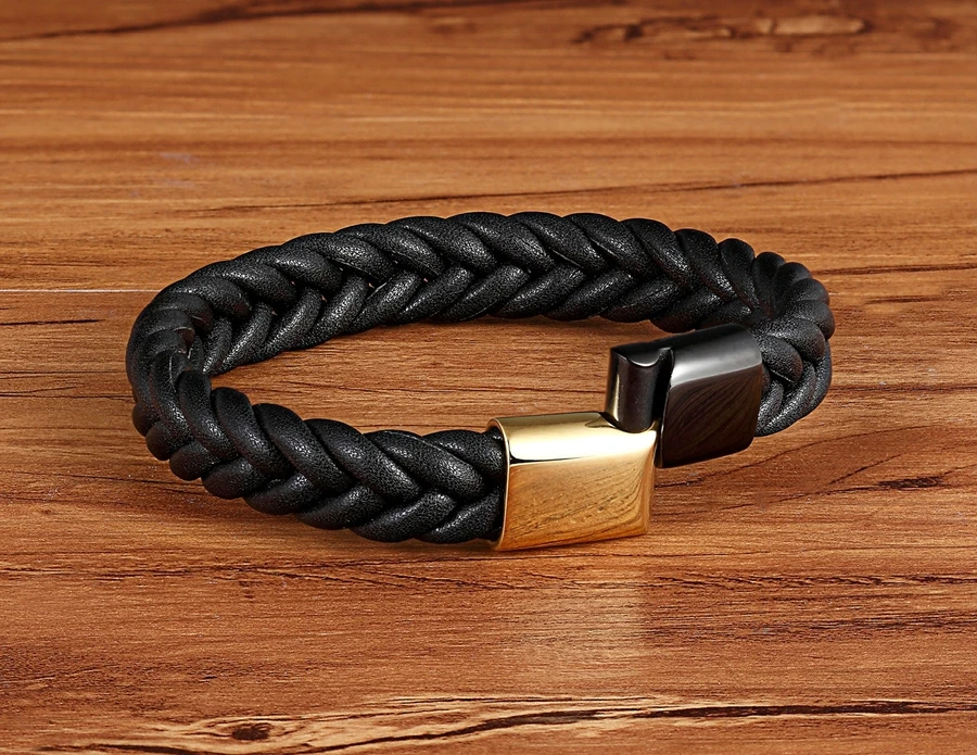 TYO модные Для мужчин черныйзолото Нержавеющаясталь магнитные застежки плетеная Натуральная кожа браслет Браслеты Панк ювелирные изделия 192123 см