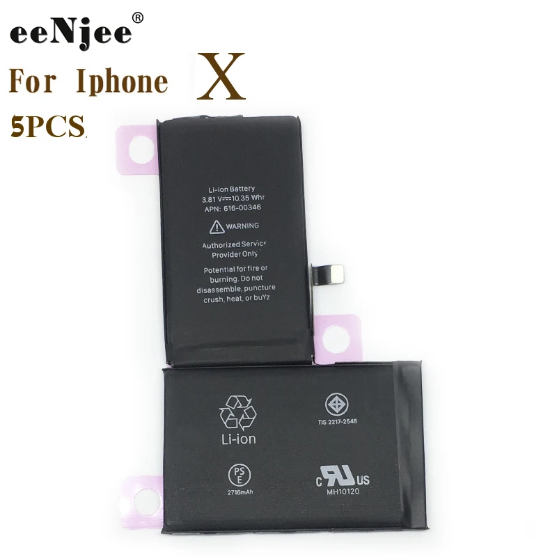 EENJEE ORG IC батарея для мобильного телефона 5 шт. для Iphone X 2716 мАч 0 цикл заменяемые Мобильный телефон батареи