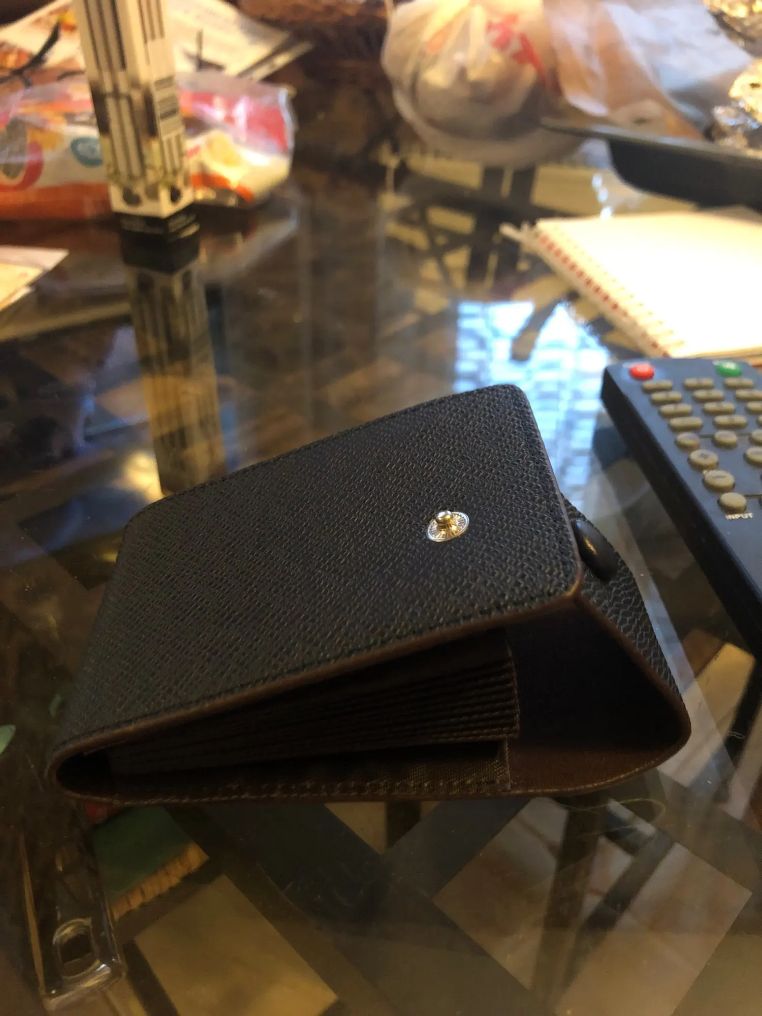 отличный простой аксессуар для хранения кредиток,брал для себя,все пришло быстро все цело,не пахнет.кнопка работает
