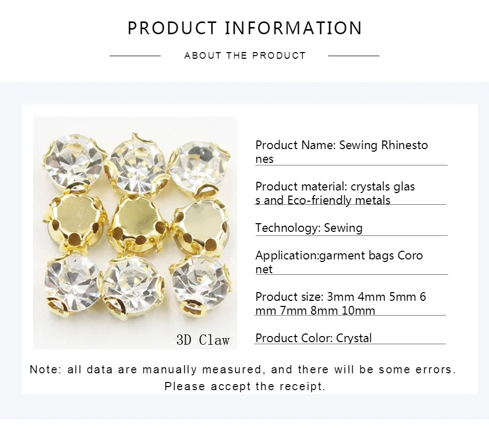 3D коготь, Стразы для шитья, Золотая основа, плоская спинка, стразы из хрустального стекла, бусины для одежды, стразы для одежды