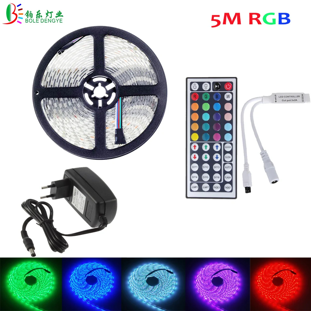Светодиодная лента BOLEDENGYE 5050 RGB 5 м 1 м 2 м 3 м водонепроницаемая гибкая лента 3 ключа 44Key ИК пульт дистанционного управления RGB 12 В светодиодный адаптер