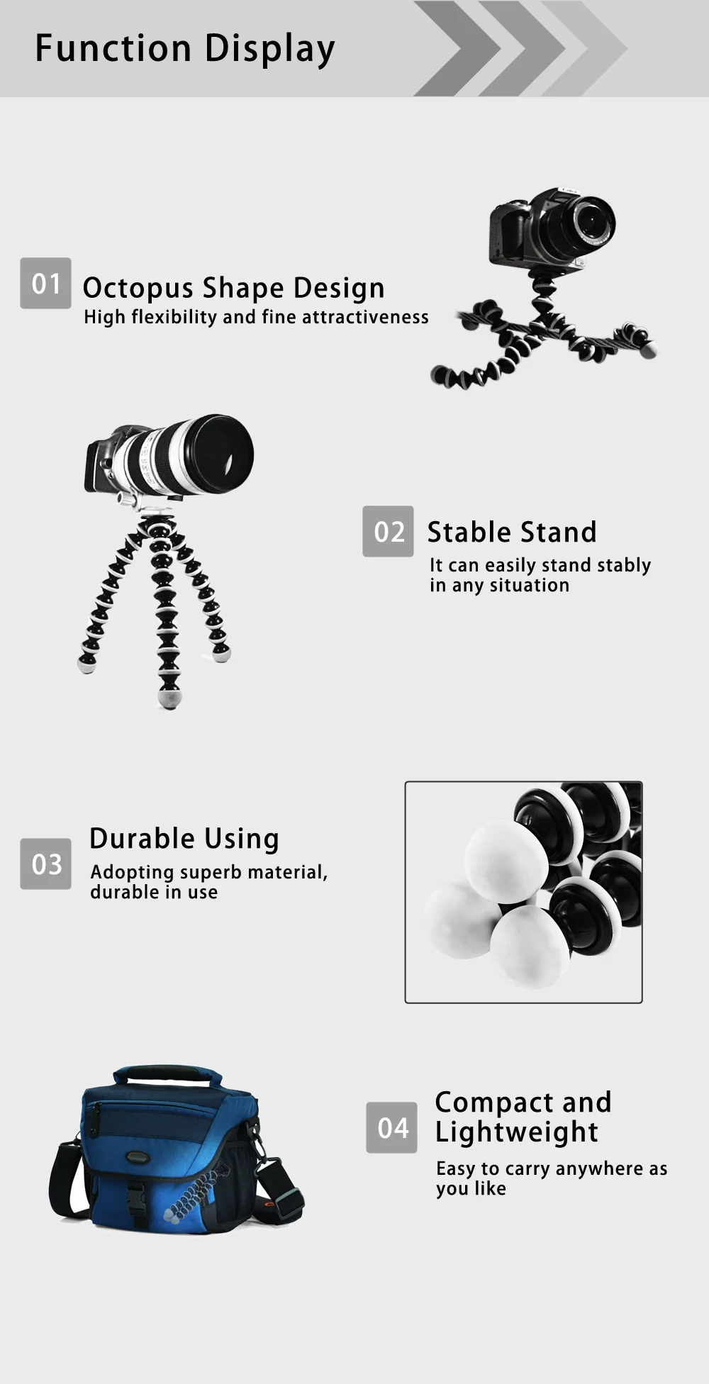 Штатив в форме осьминога играет важную роль в съемке под разными и разными углами. Кроме того, он более прочный и используется для длительного времени. Это действительно прекрасный инструмент для каждого фотографа. Благодаря таким практичным инструментам вы можете легко ударить по различным позициям для фотосъемки.