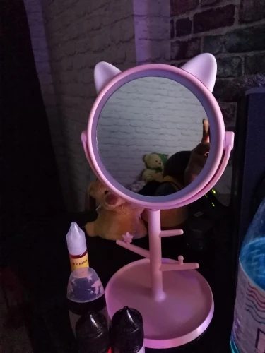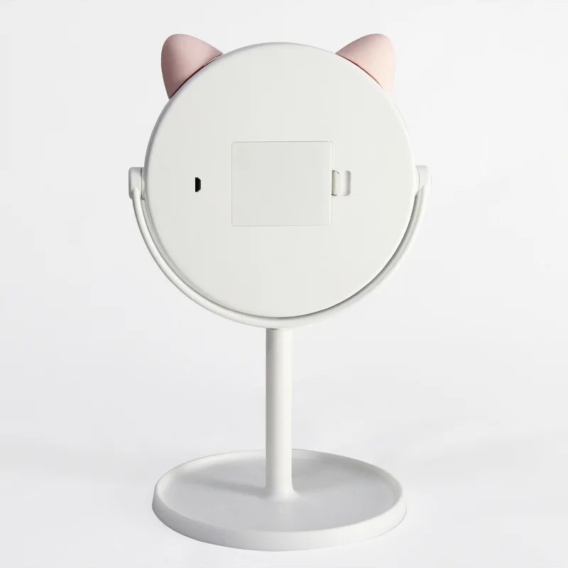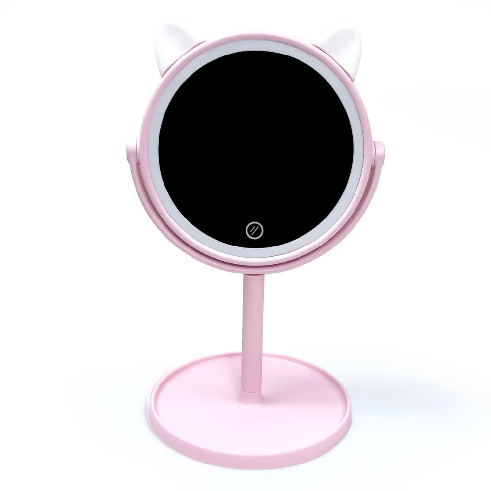 Зеркало для макияжа со светодиодной подсветкой, настольное, для использования в ванной, путешествий, светодиодное зеркало с розовыми кошачьими ушками, с USB-кабелем, 1 шт.