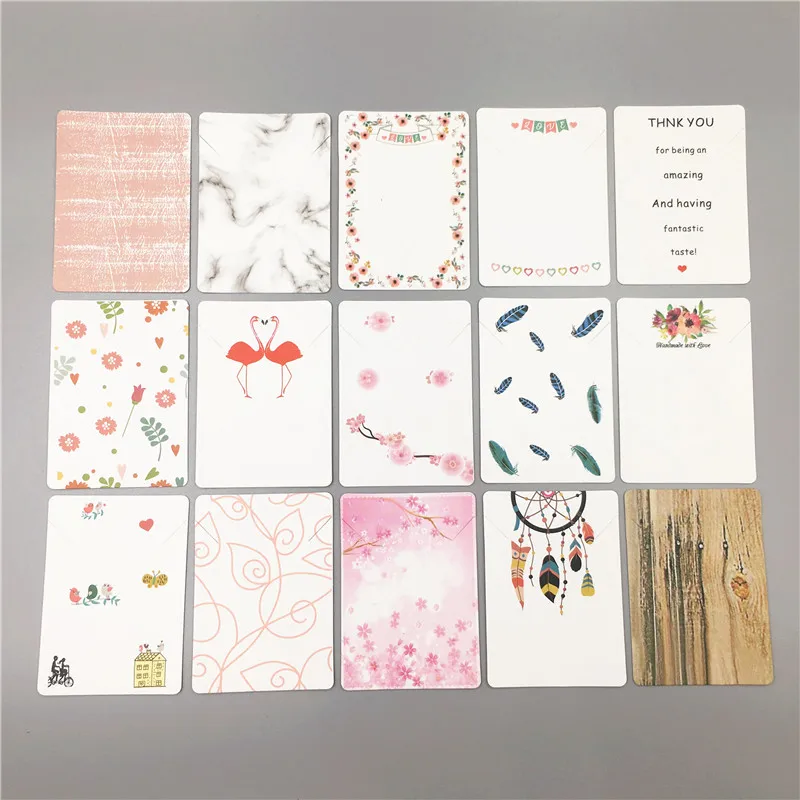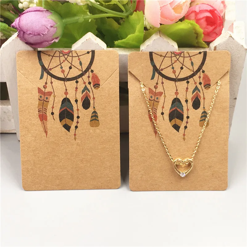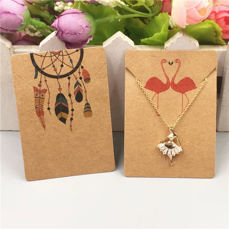 Прямоугольное крафтовое ожерельебраслет, 24 шт., 7x5 см, с принтом разных узоров, карта для упаковки ювелирных изделий