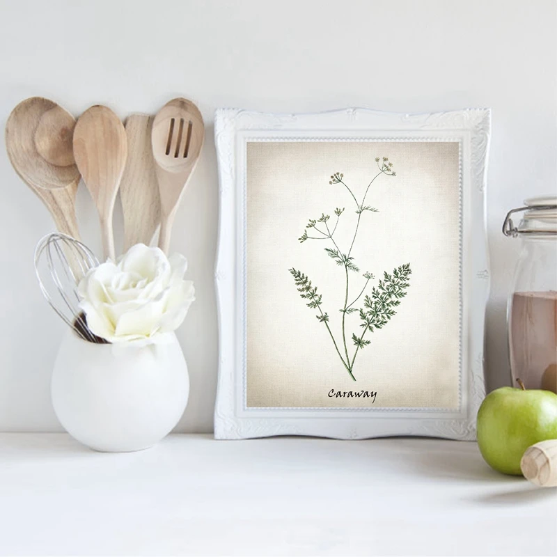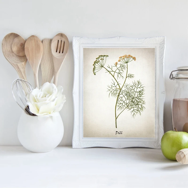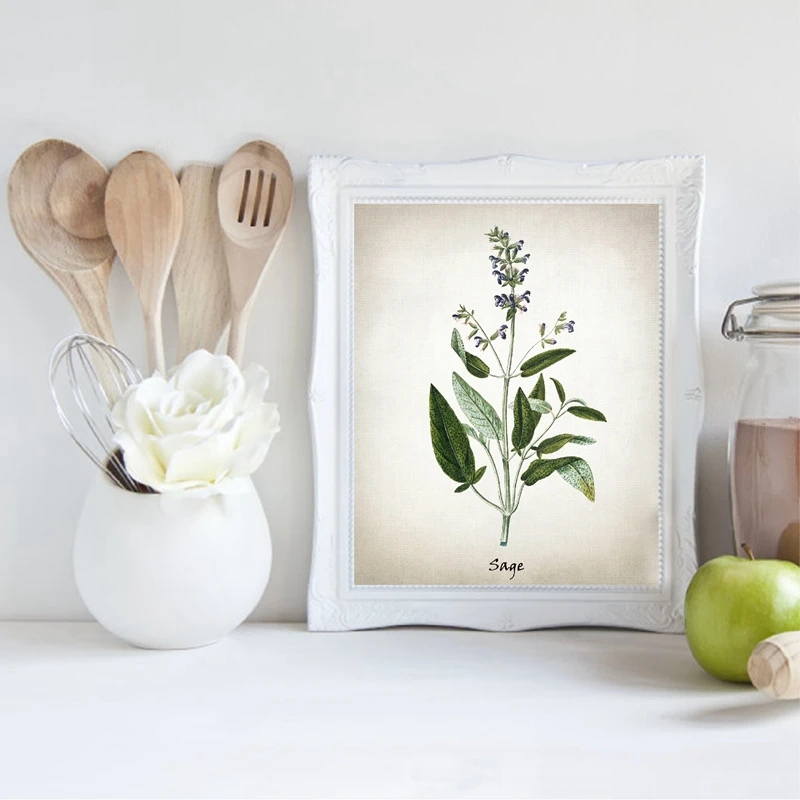 Картина на холсте с травами, винтажные травяные иллюстрации, плакаты и принты, кулинарные травы, ботаническая кухня, Настенная картина, Декор