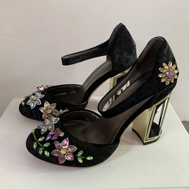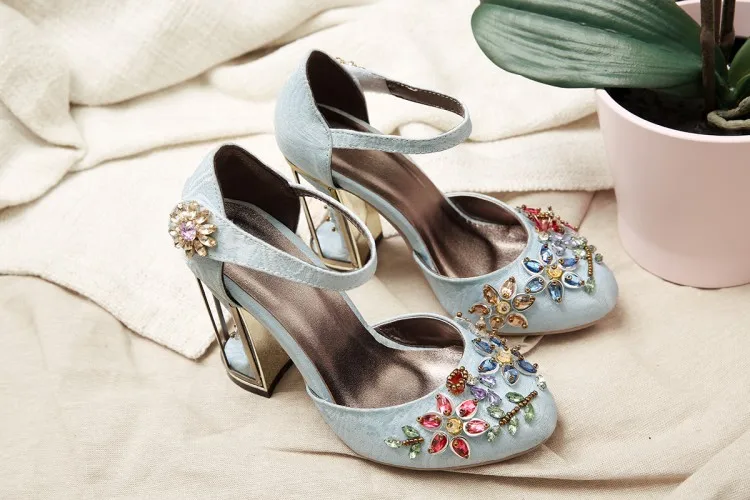 Женские туфли-лодочки с кристаллами, на высоком каблуке