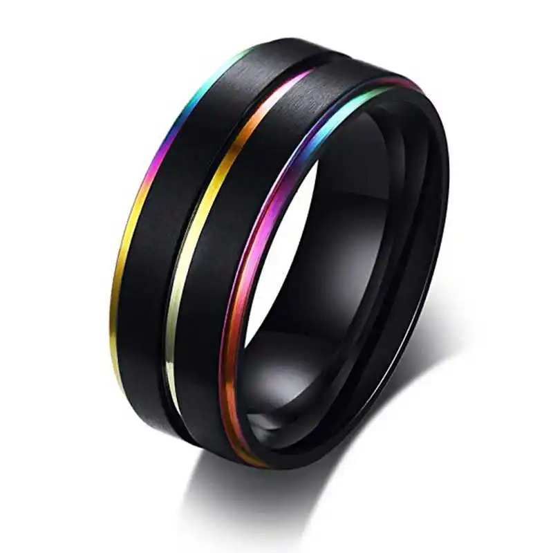 Кольца мужские с радужной линией, Классические обручальные, черные, из нержавеющей стали, разные цвета, ювелирные изделия, братские кольца, основное кольцо