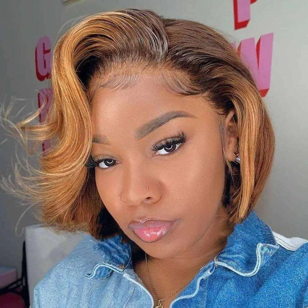 Парики из натуральных волос с эффектом омбре, Бразильские короткие парики боб, TT227, недорогие, короткие парики из человеческих волос, для чернокожих женщин