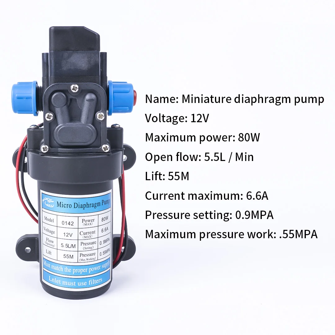 Насос водяной Электрический, 12 В24 В, 80 Вт, 130 фунтов на квадратный дюйм, 5,5 лмин, диафрагменный, автоматическое переключение для сада