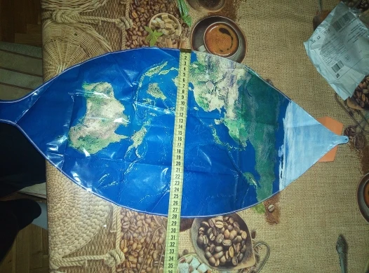 Шар доставлен очень быстро-за 15 дней от момента заказа. Доставка службой DPD, отслеживался до вручения. Запакован в обычный пакет +почтовый пакет. С продавцом не общалась. Шар красивый, рисунок как со спутника. Не надувала т. к. покупала не для себя. Шар состоит из 4 частей. Радиус шара в сдутом виде = 28см. В надутом виде диаметр шара около 36 см.
