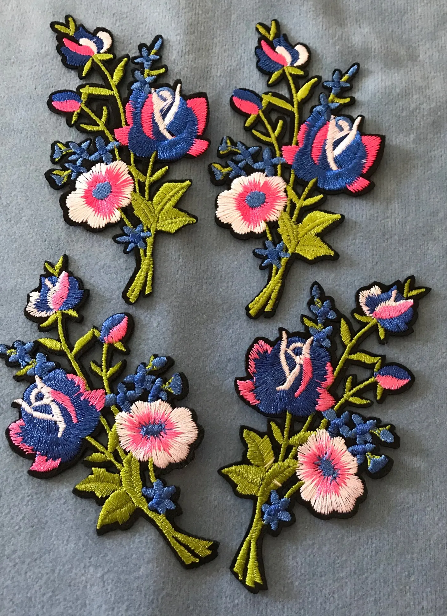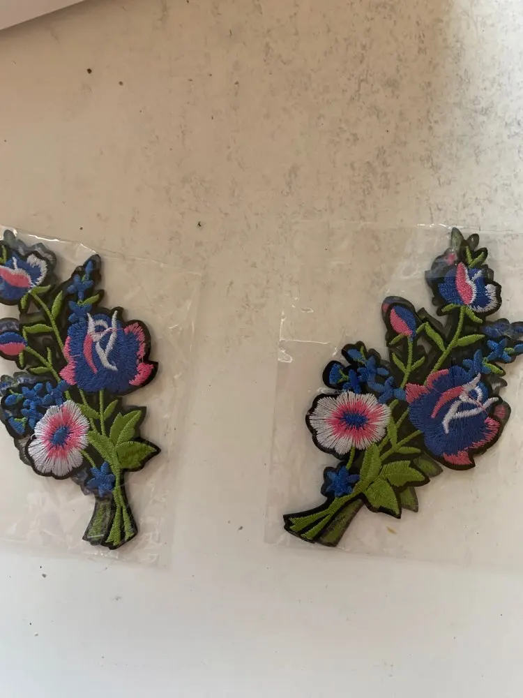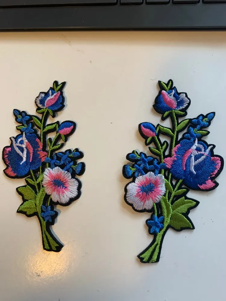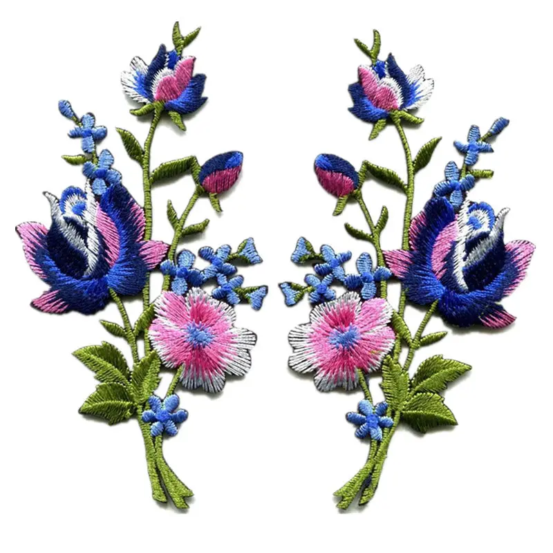 Нашивка с вышивкой, симметричная, с цветами, 2 шт.