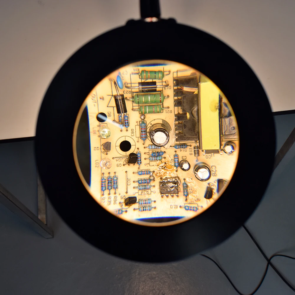 Все солидно сделано - кронштейн крепления металлический. Сама лупа - стекло. Обработка линзы удовлетворительная - для пайки и мелкой работы годится. Есть искажения на самых краях - особо не мешают. Подсветка хорошая. Пришло на неделю позже обозначенного срока в Москву.