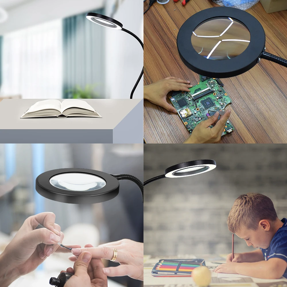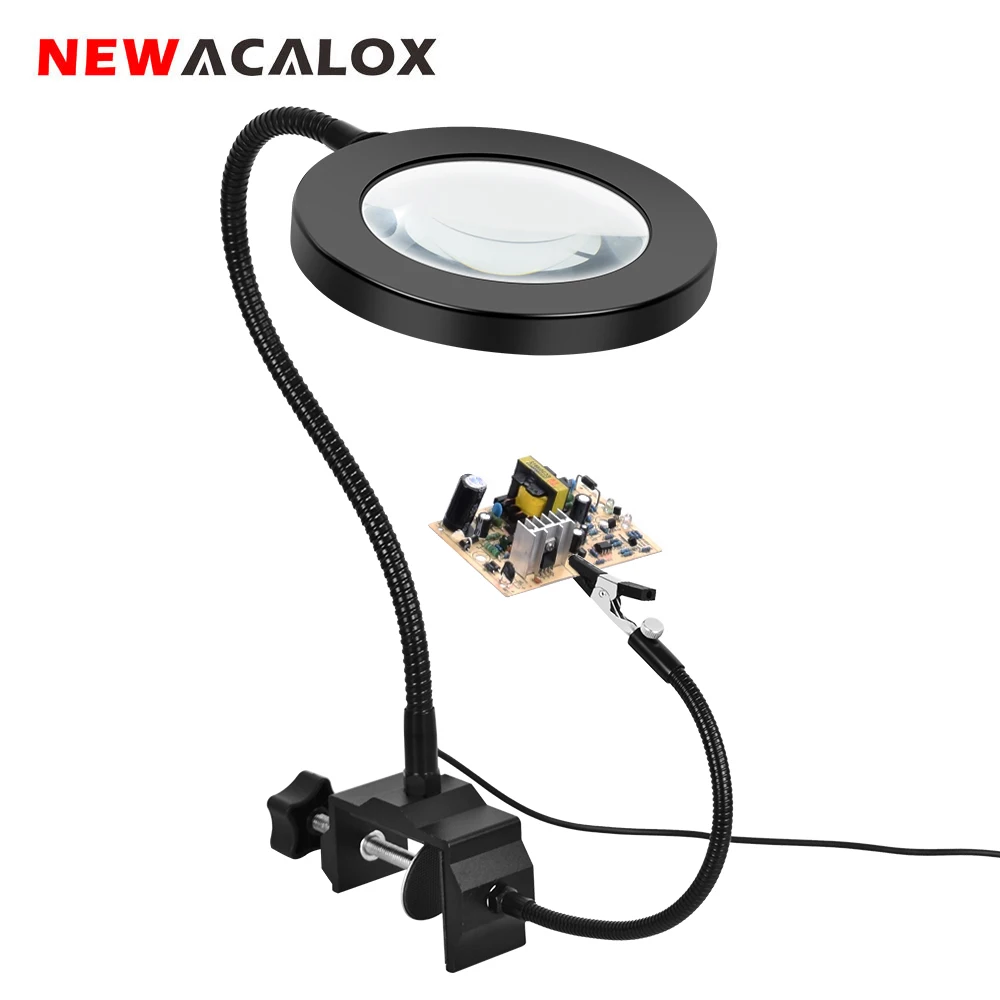 NEWACALOX 5X USB СВЕТОДИОДНЫЙ Лупа с 2 шт. гибкие руки подставка для паяльника с подсветкой увеличительные очки сварочный инструмент для третьей руки