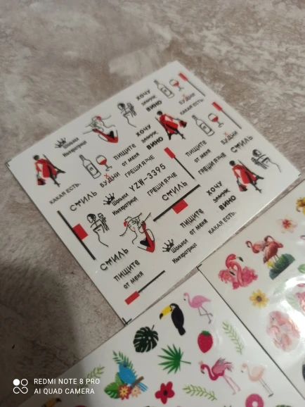 получила свои "неприличные" наклейки как мама сказала, ахах, ладно, пришли где то за месяц, по качеству хорошие, довольно четкие, в общем, мне нравится