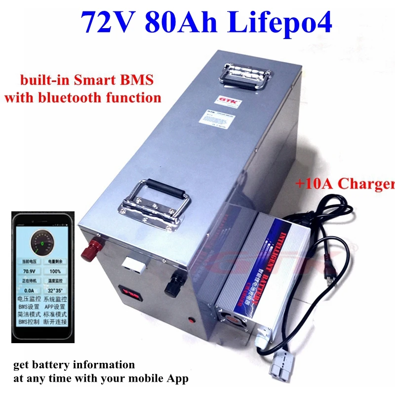 Новый литиевый Аккумулятор Lifepo4 72В 80А, BMS с bluetooth для 8000 Вт 72В RV автомобиля, мотоцикла, лодки, гольф-кары + зарядное устройство 10A