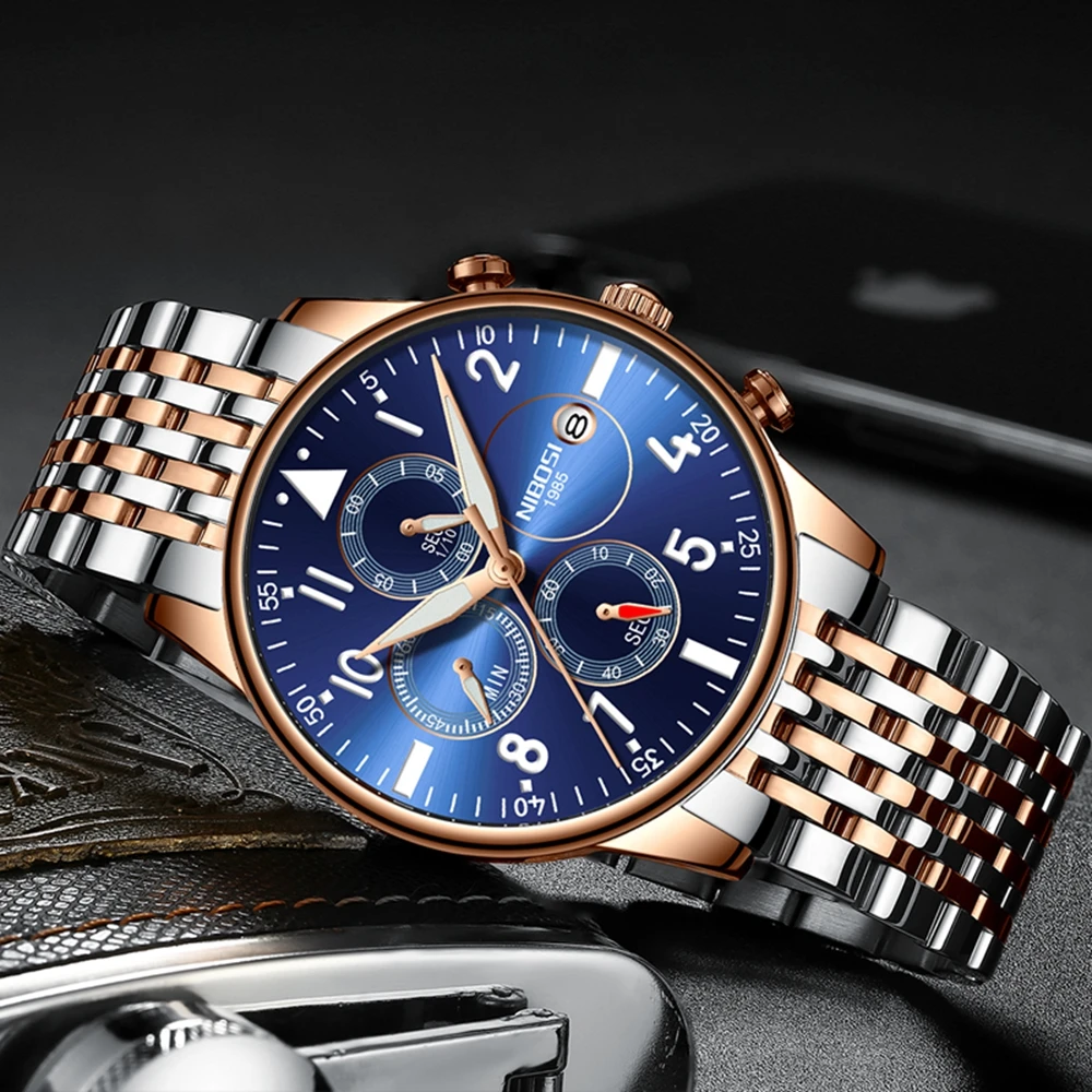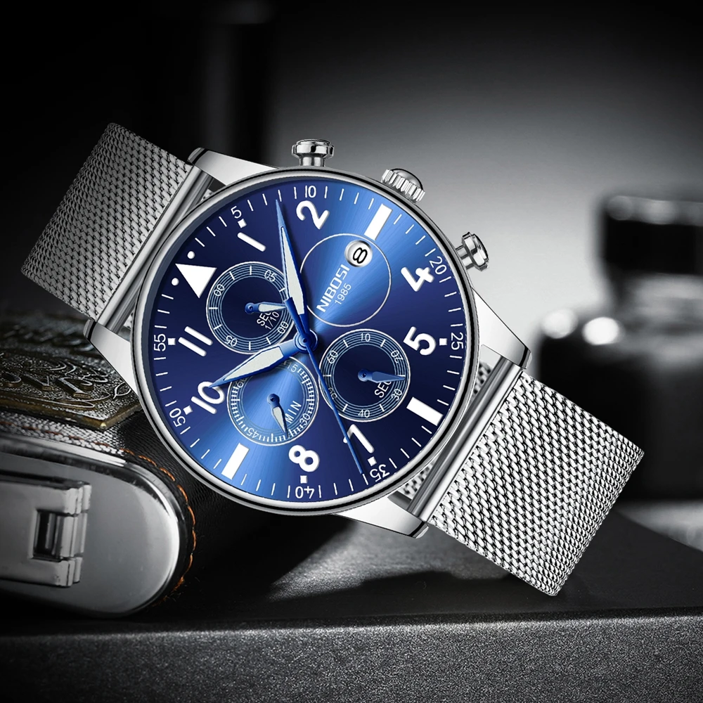 Часы наручные NIBOSI Мужские кварцевые с хронографом, брендовые Рос...