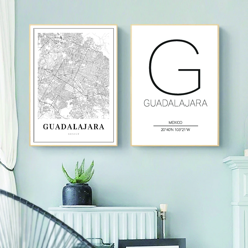 Карта Гвадалахара, принт, Мехико, город Халиско, улица, Дорожная карта, плакат, холст, живопись, черно-белая картина, офисный настенный художественный Декор