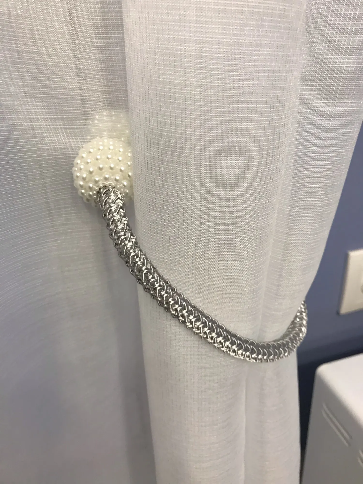 Красивое украшение для штор/ткани для штор. Серый цвет с белым жемчугом. Такой же магнит хорошо держит! Есть много комбинированных подвесок upinana❤② Рекомендуем тепло!
