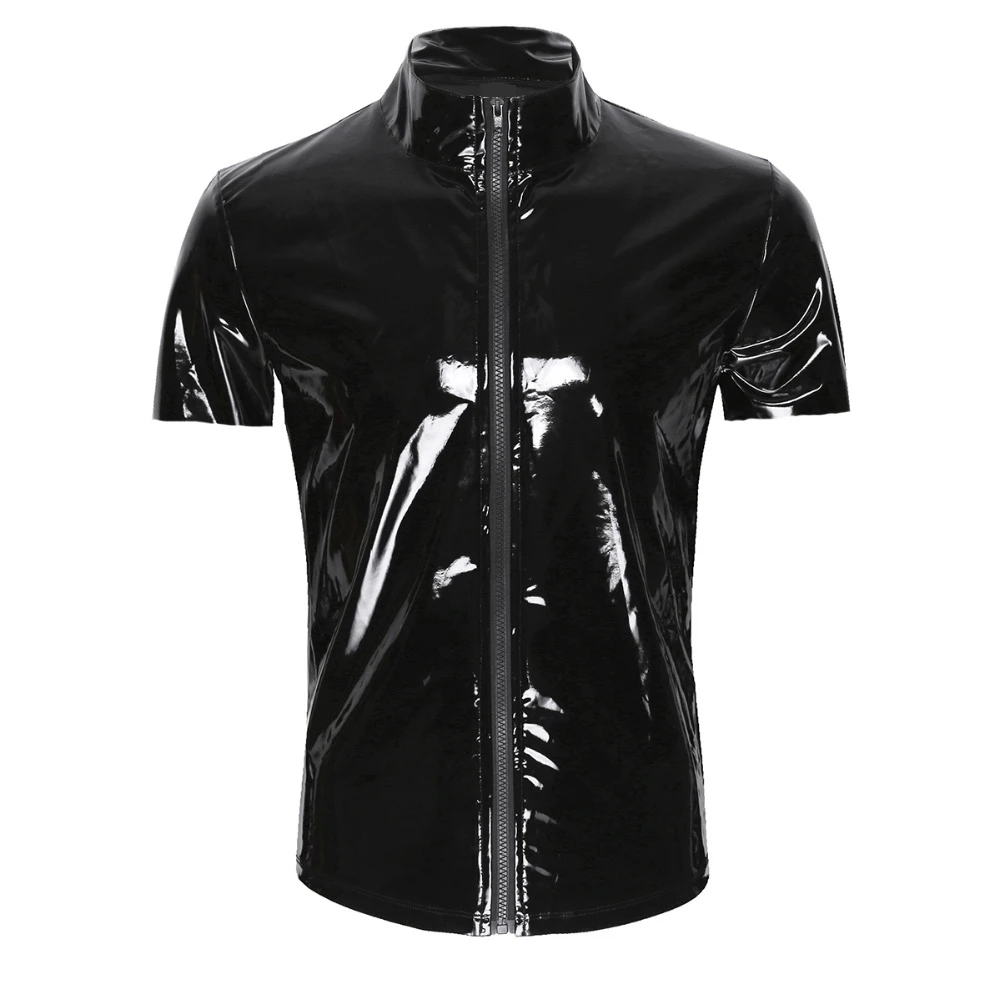 Мужские и женские рубашки из искусственной кожи, футболки из искусственной кожи на молнии, мужские сексуальные топы для фитнеса, футболки для геев, униформа в стиле панк