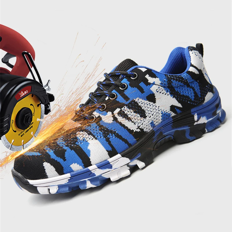 Кроссовки мужские камуфляжные со стальным носком, Спортивная защитная обувь для активного отдыха, походов, работы, летняя дышащая обувь