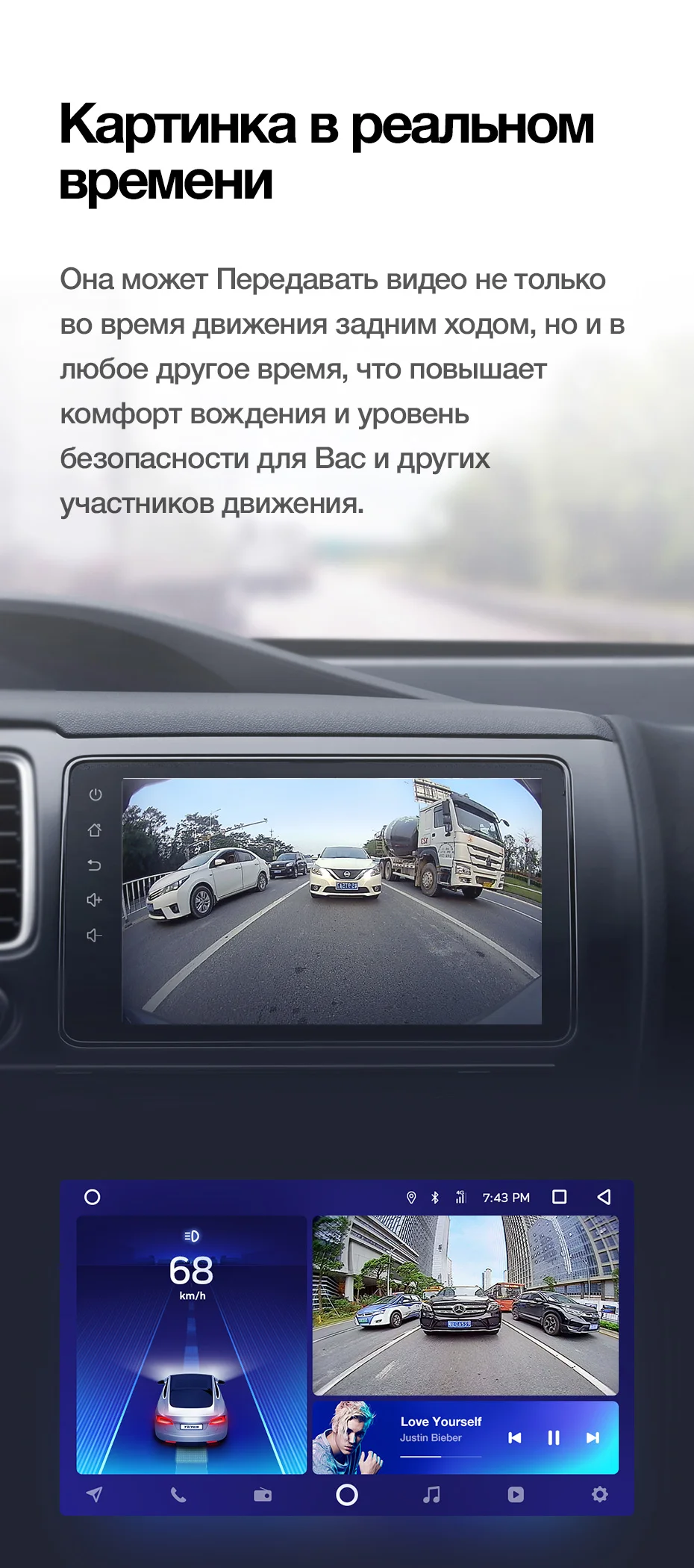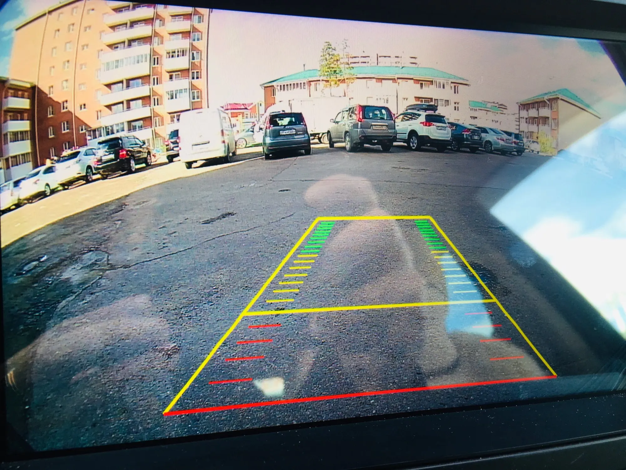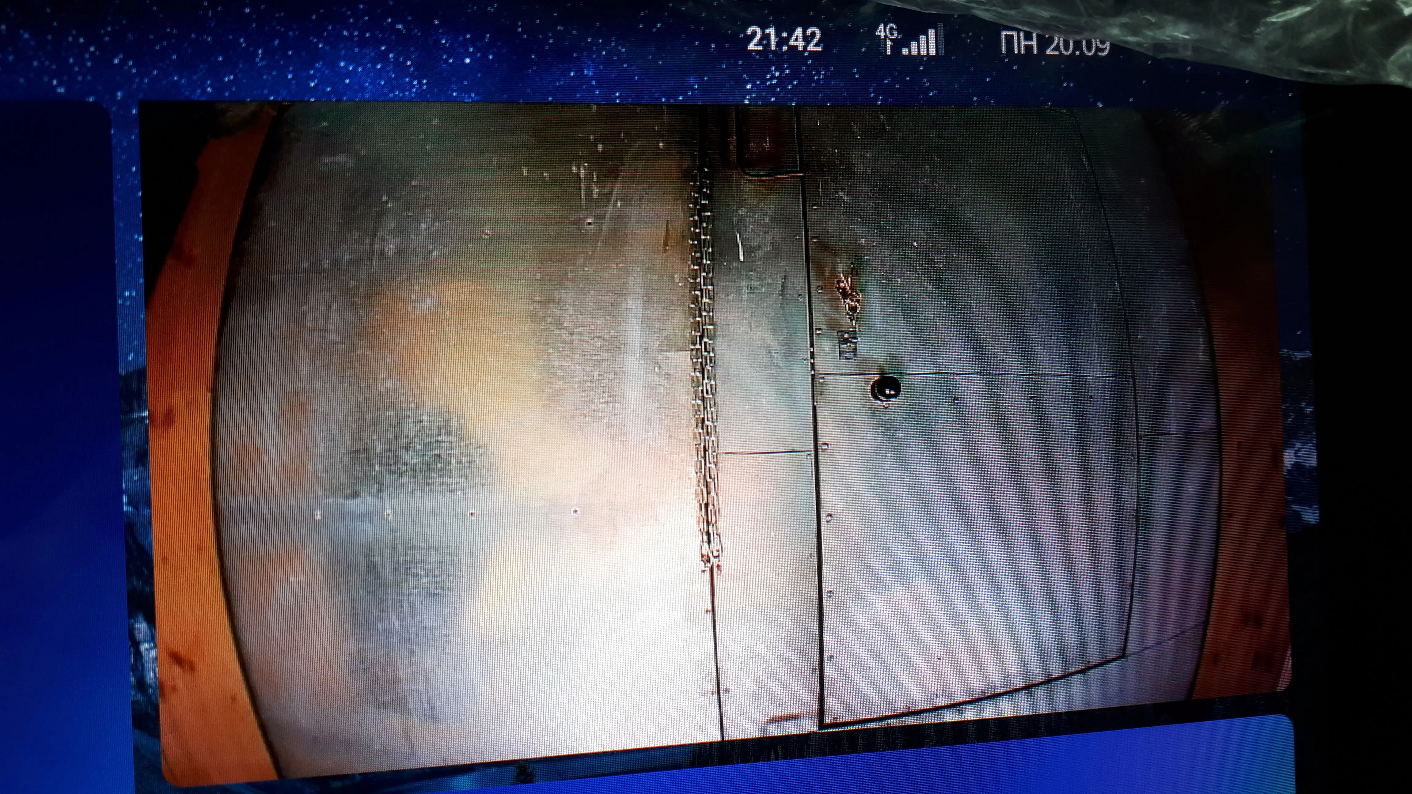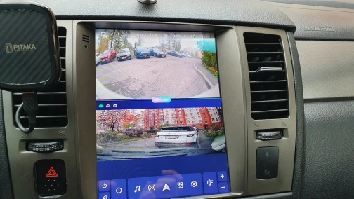 Камера просто супер! Такого широкого угла я давно не видел, обзор шире боковых зеркал. И очень удобно парковаться прямо под бампер. Машины сзади выглядят как Смешарики, правда, но оно и понятно, чем шире угол - тем округлее. Разделение экрана поддерживается на вертикальном экране (лучше всего поддерживается, если приложение задней камеры включать снизу, а не сверху вертикального экрана).