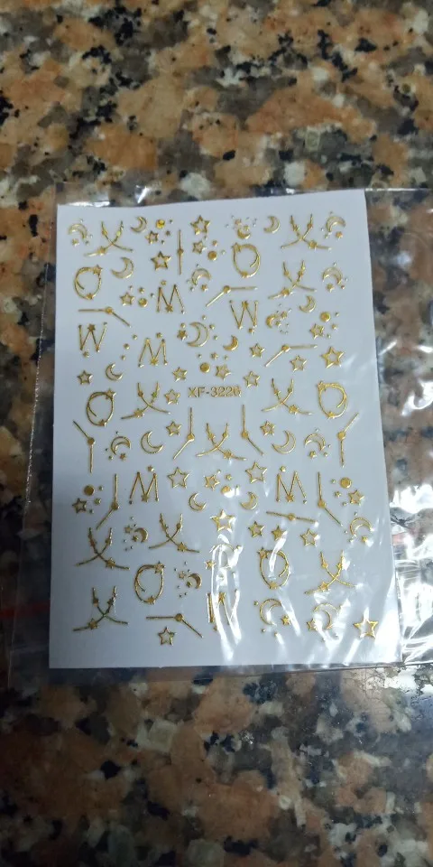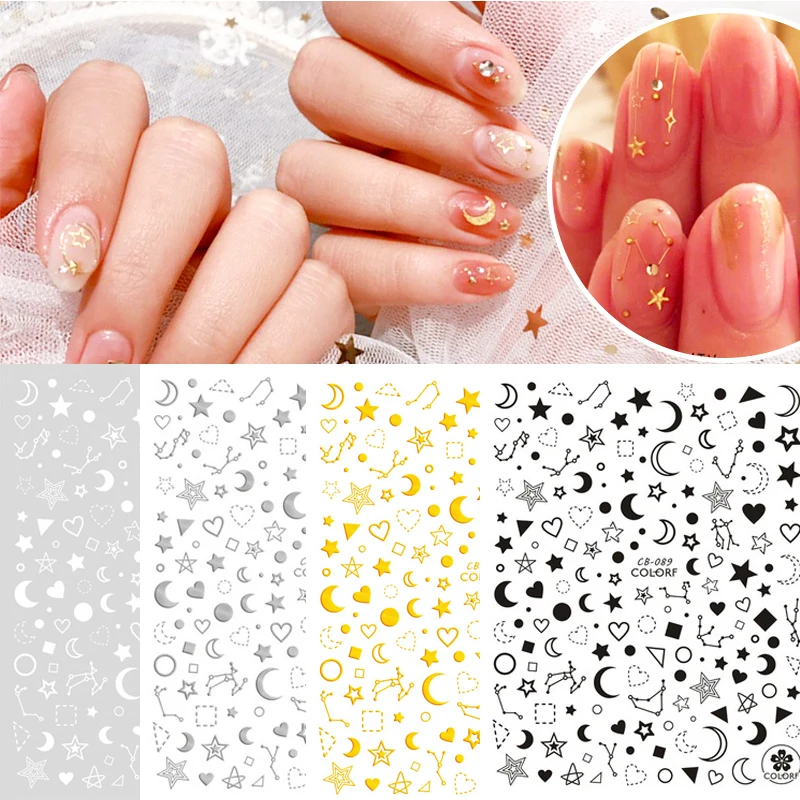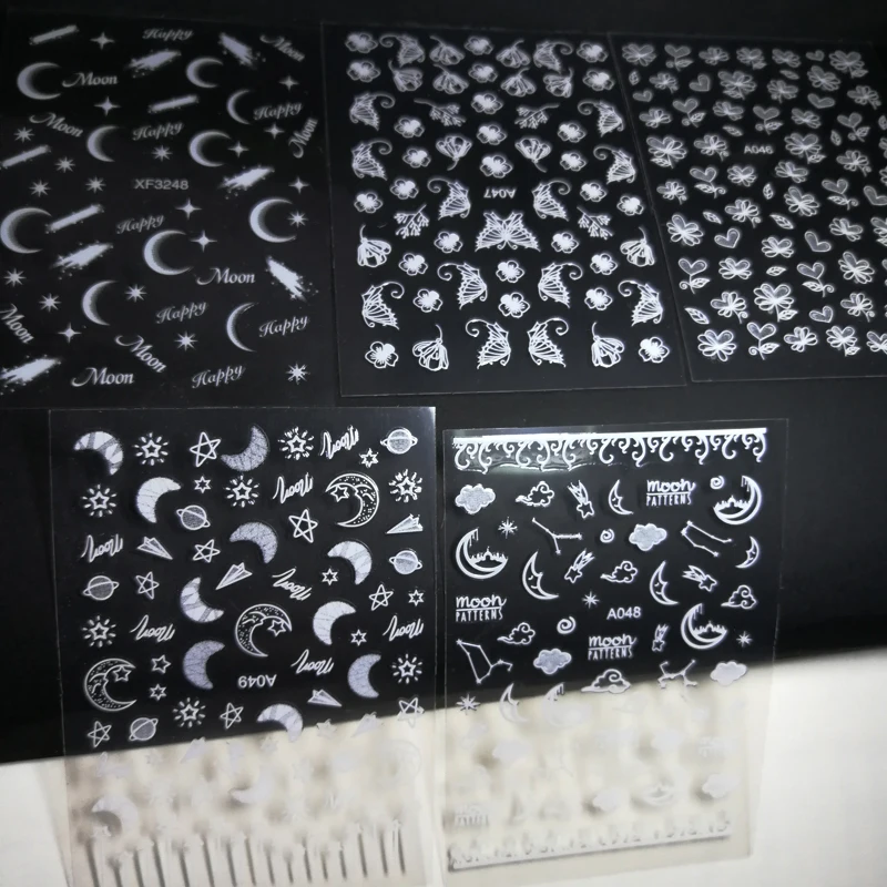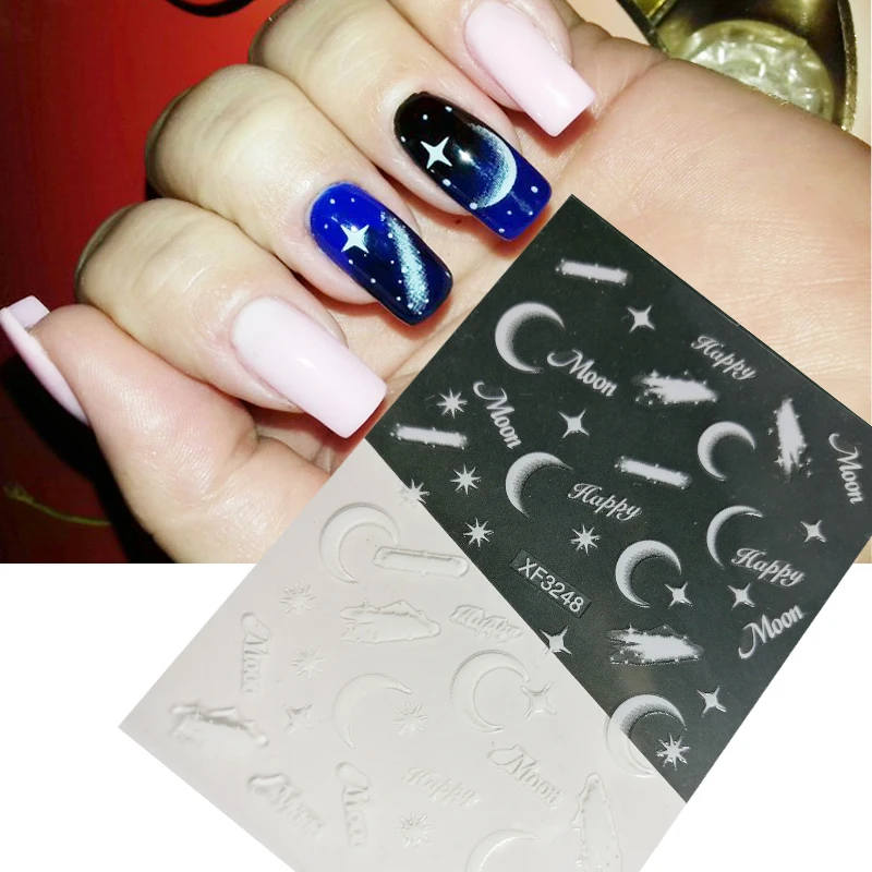 3D наклейка для ногтей, черная, золотая луна, наклейка, белая модель, самоклеящиеся звезды, украшение для ногтей, художественная наклейка для маникюра