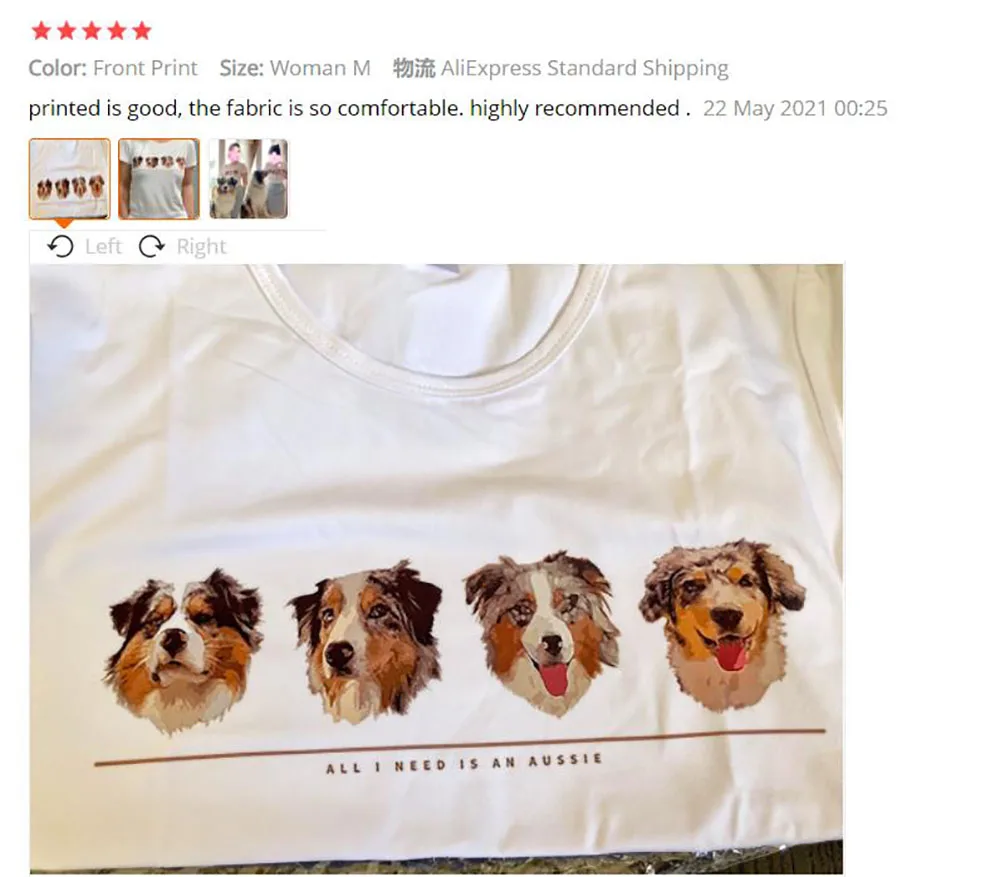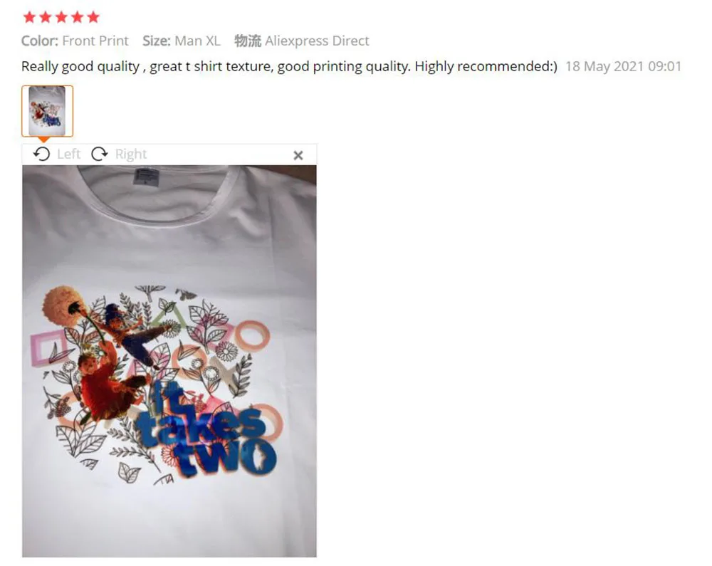 Я хочу сказать в своем отзыве о продавце. Я отправила продавцу свой макет с фото и попросила, чтобы он мне со своей стороны отправил, что получилось. И только потом отправлял посылку. Но из моего макета была сделана на майке только фотогпафия. Это я узнала, как через месяц получила заказ. Меня это очень расстроило, так как платила я за то, что хочу видеть на майке, а получила совсем не то. Открыла спор. Продавец вернул деньги. Ставлю хорошую оценку за то, что в итоге все хорошо закончилось. А так будьте внимательнее. И фото должно быть очень качественное, и лучше не с телефона.