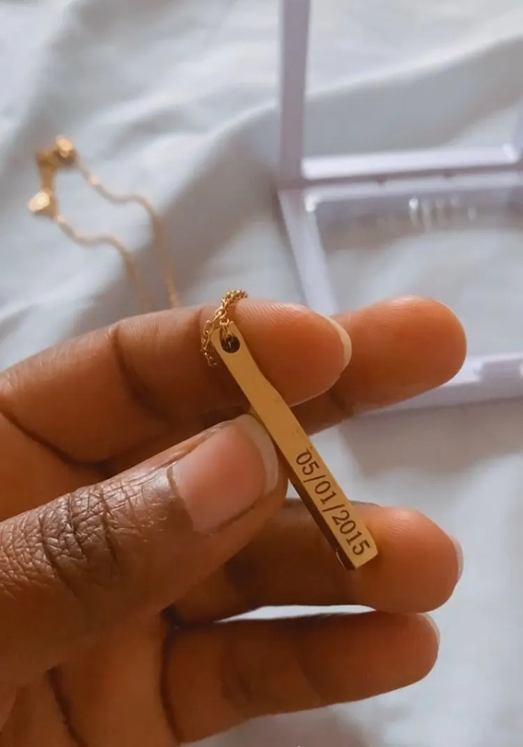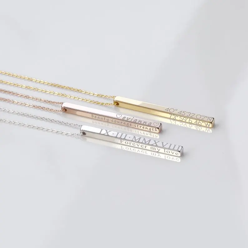 Персонализированное Ожерелье Вертикальная Полоса Ожерелье Ювелирные Изделия Подарок Женщины Мужчины Четыре Стороны Гравировка Квадратный Кулон Новое Имя Ожерелье Подвеска Из Нержавеющей Стали Подарок