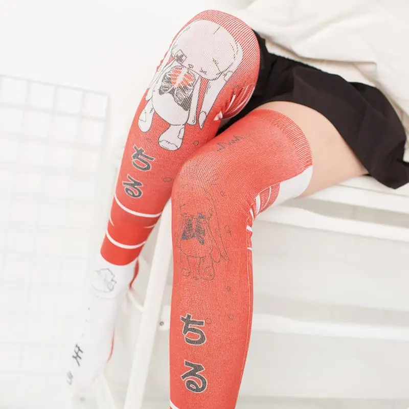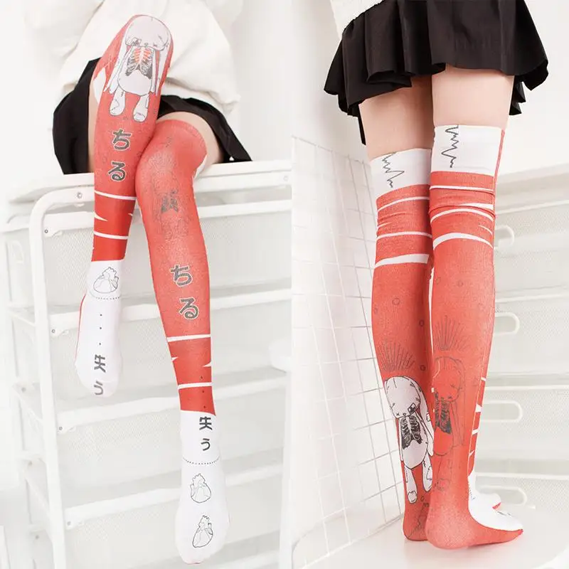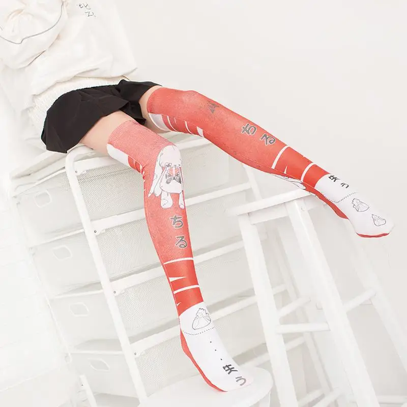 Модные женские пикантные чулки с 3D принтом, Забавные милые Мультяшные красные чулки с кроликом, аниме вторичные шелковые чулки до колена для девочек