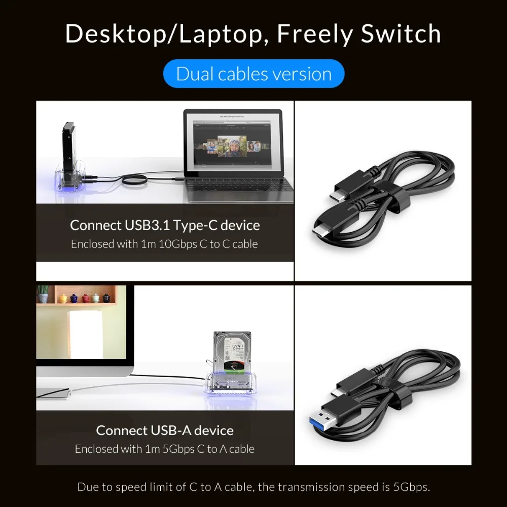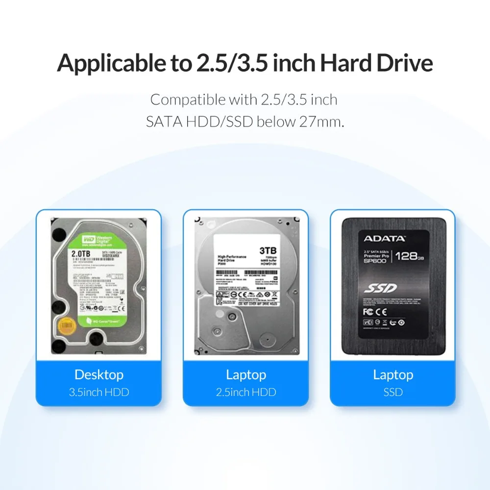ORICO 2,5 3,5 ''SATA к USB 3,1 HDD чехол 10 Гбитс Gen2 поддержка UASP Type-C HDD Чехол прозрачный SSD жесткий диск корпус 12 ТБ Max