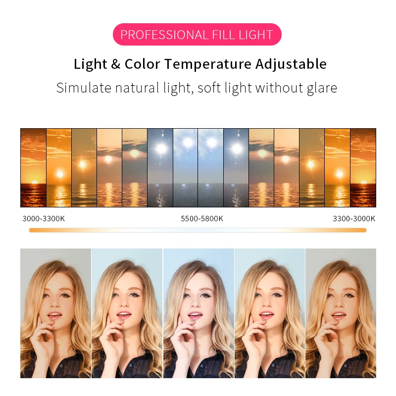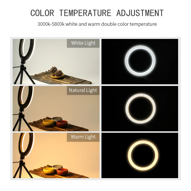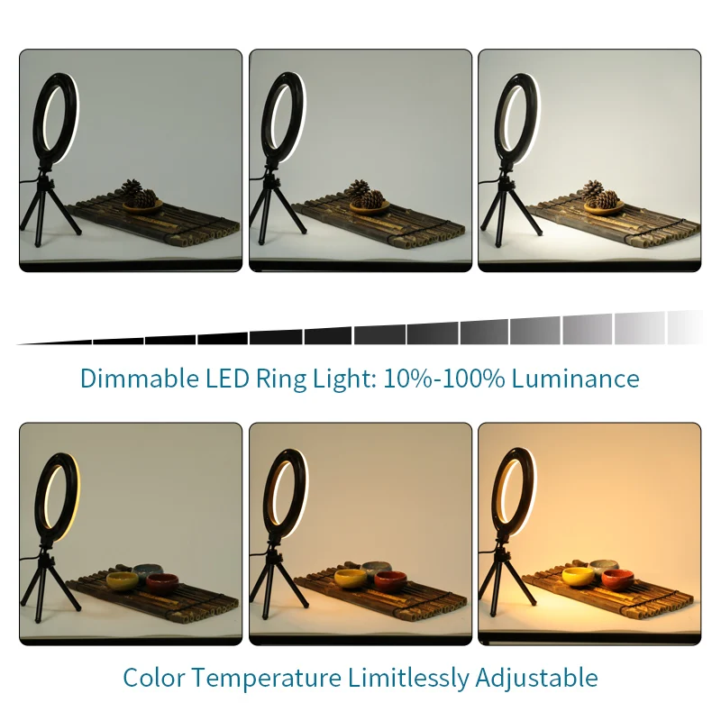 Приглушаемый светодиодный студийный светильник холодного теплого света, 6 дюймов, кольцевой светильник для фото-и видеосъемки со штативом, Настольная ламсветильник со штативом для Canon