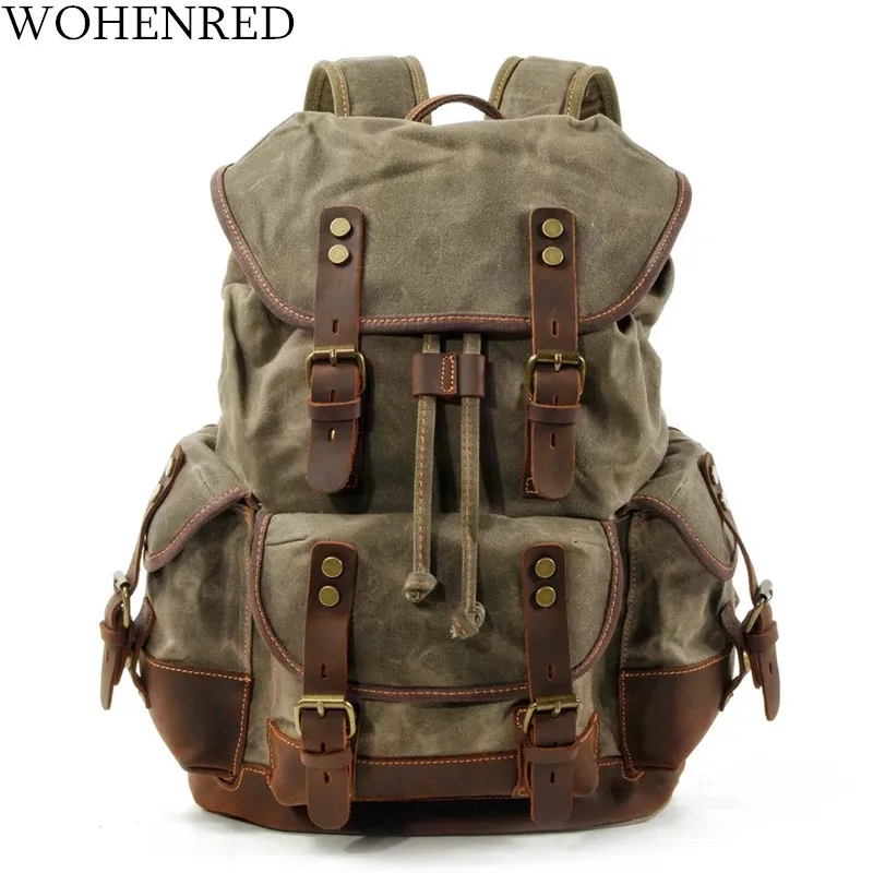 Мужской рюкзак WOHENRED, из парусины и кожи, с большой емкостью, винтажный, водонепроницаемый, для ноутбука