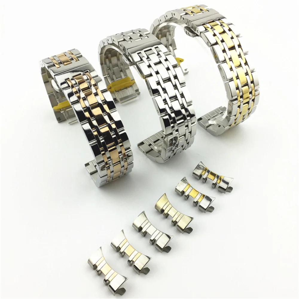 Ремешок из нержавеющей стали с изогнутым концом, браслет для часов Samsung Tissot, с 7 бусинами, с пряжкой-бабочкой 12 мм-24 мм
