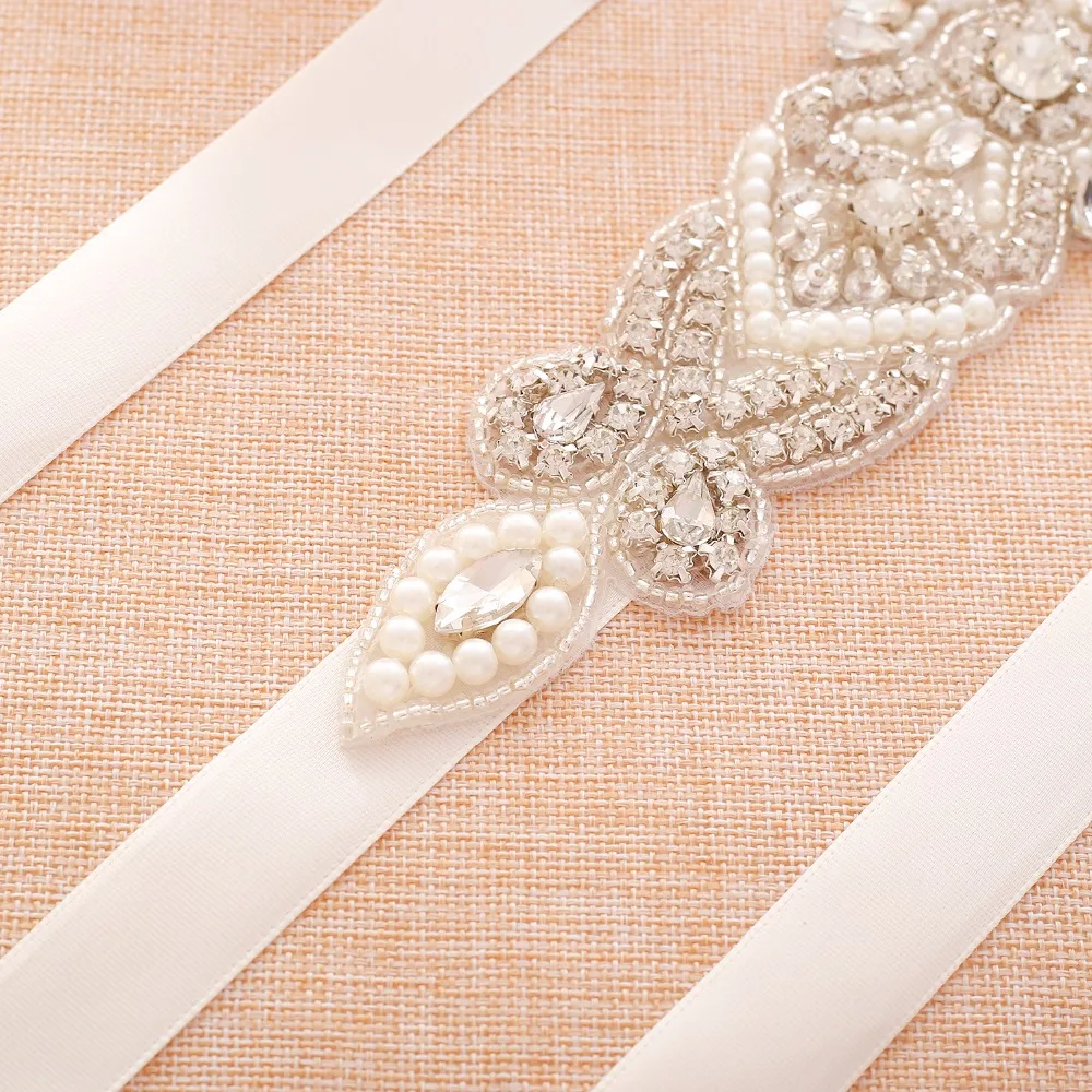 Женский свадебный пояс с кристаллами и жемчугом, серебристые Стразы