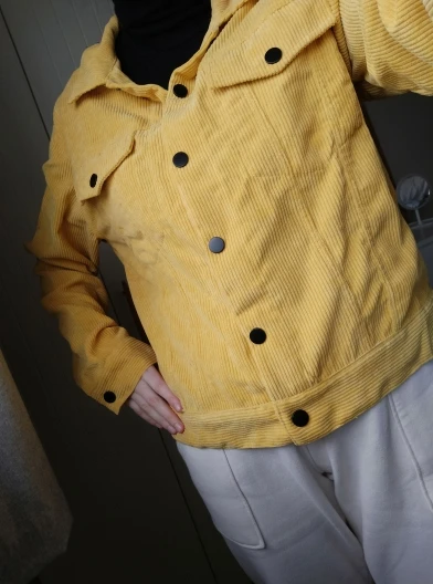 Куртка женская Вельветовая, с карманами, желтая, осень 2019