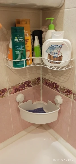 Классные полки, берите обязательно! Теперь в ванной порядок) Сначала хотела взять пластмассовую, но потом наткнулась на эти, их плюс в том, что они из металла, значит не треснут, так же они дырявые, вода будет стекать, а не скапливаться внутри. Липучки, на которые полка крепится, очень мощные, на них даже самому можно повеситься, их отдирать только вместе с плиткой придется, в случае чего. Доставка очень быстрая, из России, в ХМАО за 5 дней. Я супер довольна!