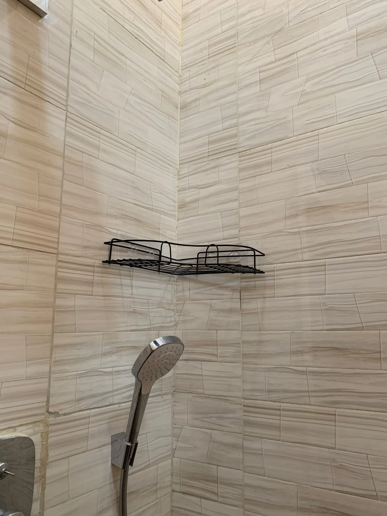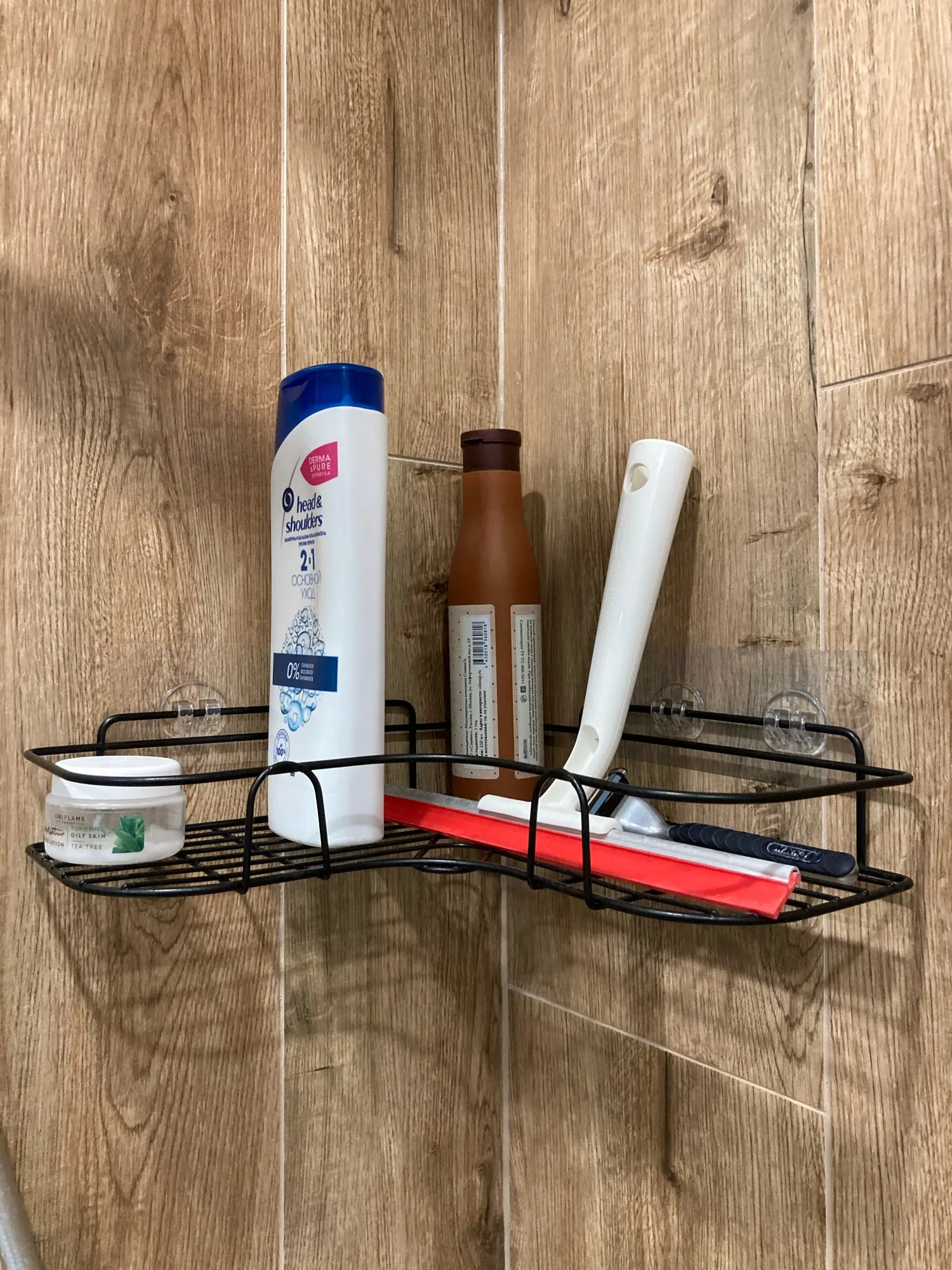 Полка просто огонь! Прекрасно смотрится, не портит стены потому что ничего не надо сверлить! Качество покраски кончено так себе, видно стыки, где то краска неровно (толще, тоньше). Но! За баночками с шампунями один фиг этого не видно. Держится отлично. Рекомендую