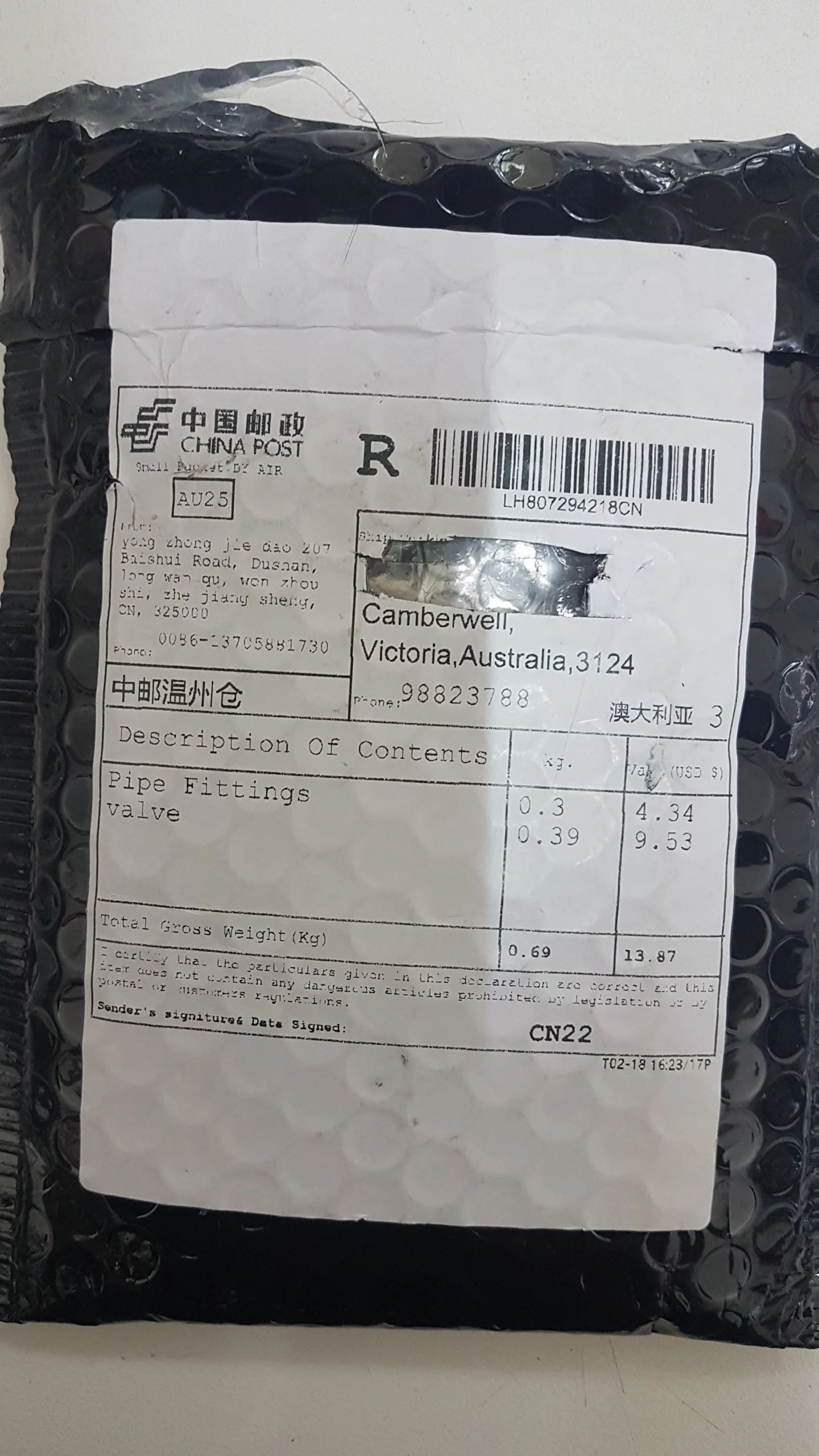 Страна: AU Thread Specification: DN15 Доставка: China Post Ordinary Small Packet Plus 02.03.2021
