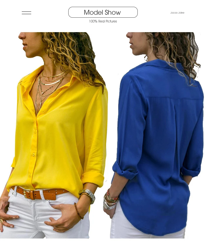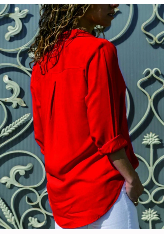 Женская шифоновая блузка с длинным рукавом, V-образным вырезом
