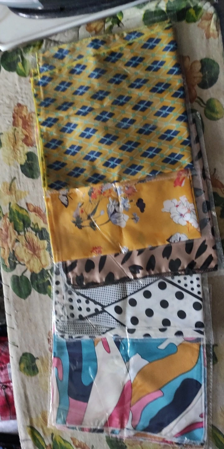 платочки яркие,как на фото,только мелковаты,мне завязывается,но лучше бы немного побольше,а так в принципе довольна,Спасибо,товар пришёл быстро,в подарок резинка для волос.