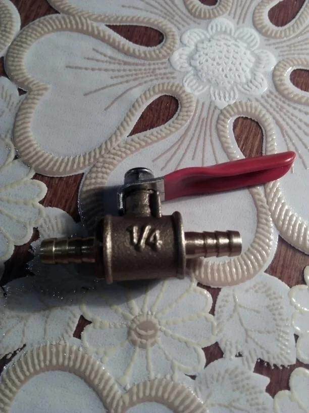 Клапан с красной ручкой 6 мм-12 мм, штуцер для шланга, встроенный латунный, для воды, масла, воздуха, газа, топлива, запорный шаровой клапан, фитинги для труб