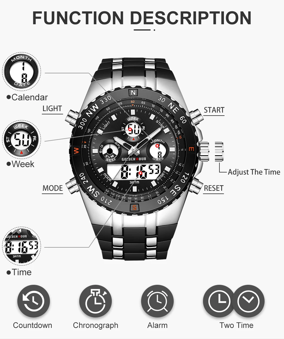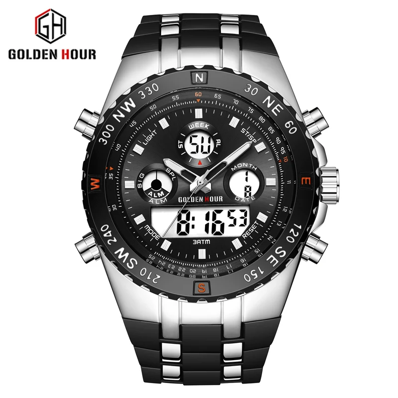 Мужские Спортивные Светящиеся Часы GOLDENHOUR с двойным дисплеем, мужские Модные уличные военные черные резиновые наручные часы, светящиеся часы