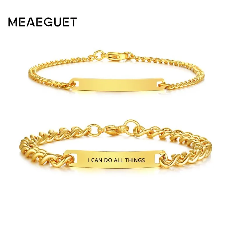 Браслет унисекс из нержавеющей стали с золотой именной табличкой, с гравировкой