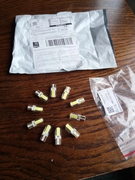 Товар отправлен быстро. Дошёл в Беларусь за 3 недели, несмотря на то,что был заказан 11.11. Комплектация полная - 10 штук. Упаковка - просто насыпаны в пупырчатый конверт, но там биться нечему, так как колбочки у ламп силиконовые. Свет - яркий, даже не белый, а немного голубоватый (это и есть 6500 К). Все установленные лампы исправны (если не загорелась - меняйте полярность).