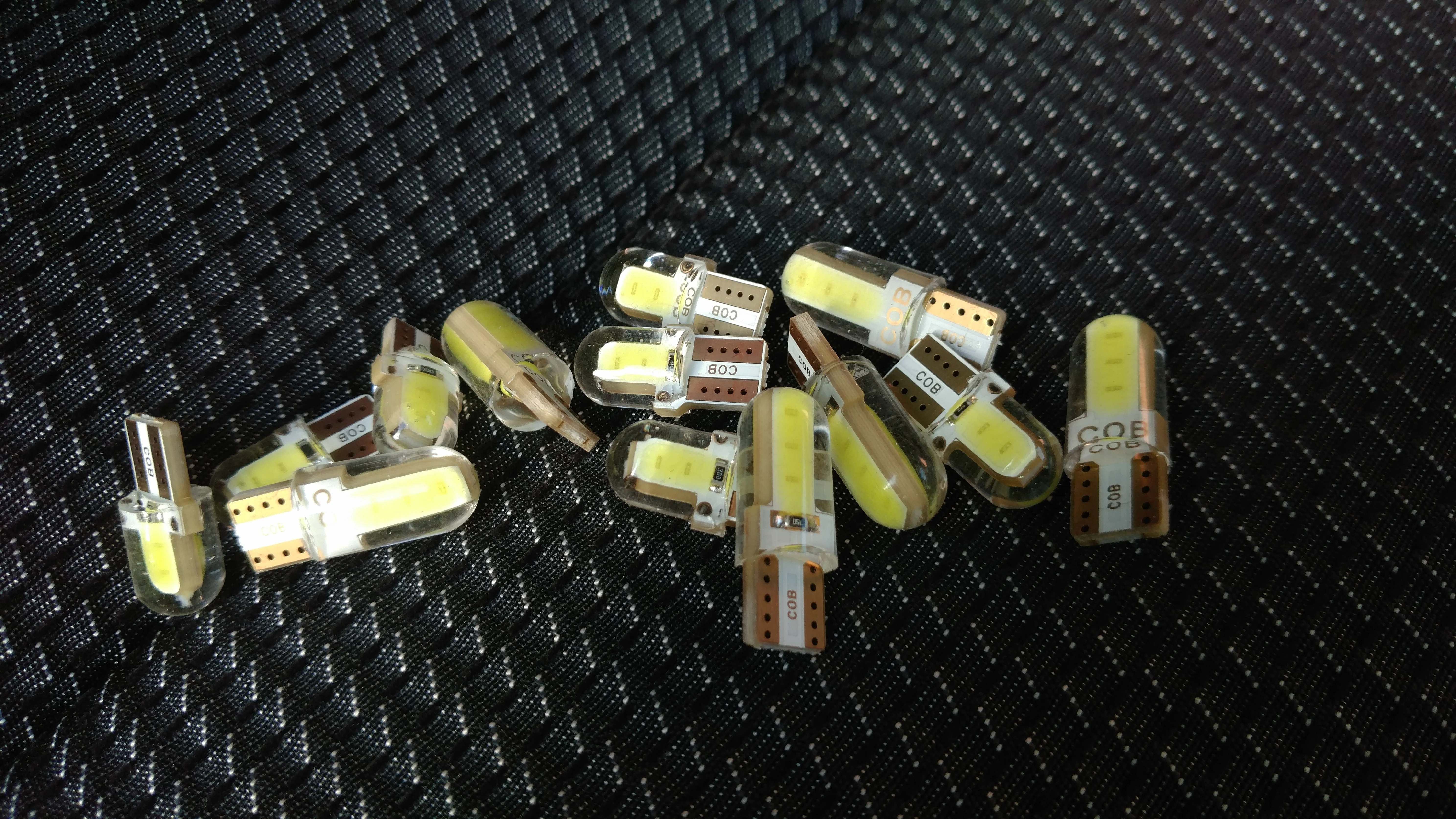 Лампочки вроде все горят(10 шт брал), на мой взгляд слишком синие, это уже не 6500К, а выше, воткнул в плафоны по салону, светят и ладно. Для w5w тонковаты по контактной группе, так что жду выпадений из патрона для вертикально висящих.