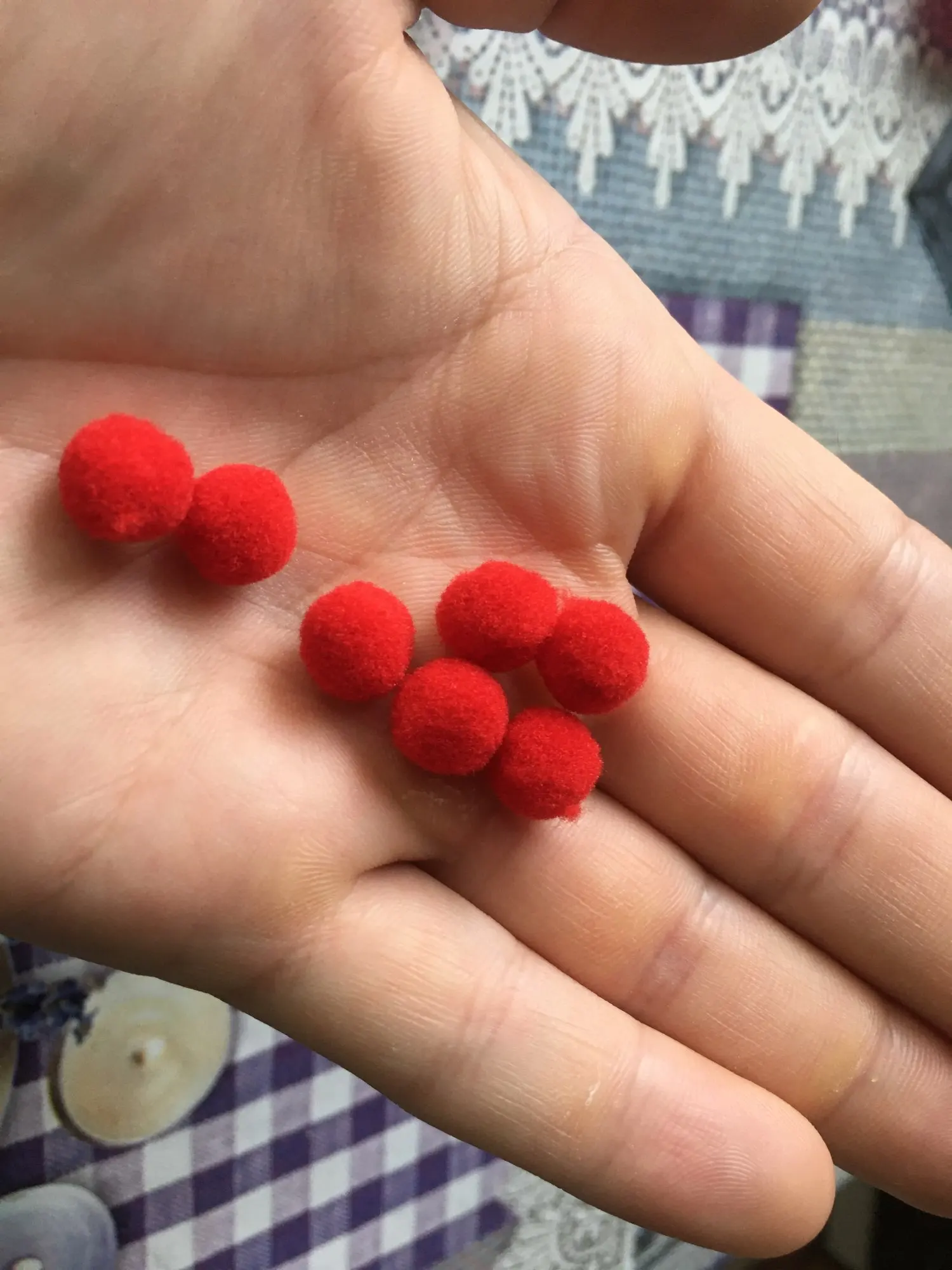 очень красивые, яркие помпончики. спасибо продавцу!