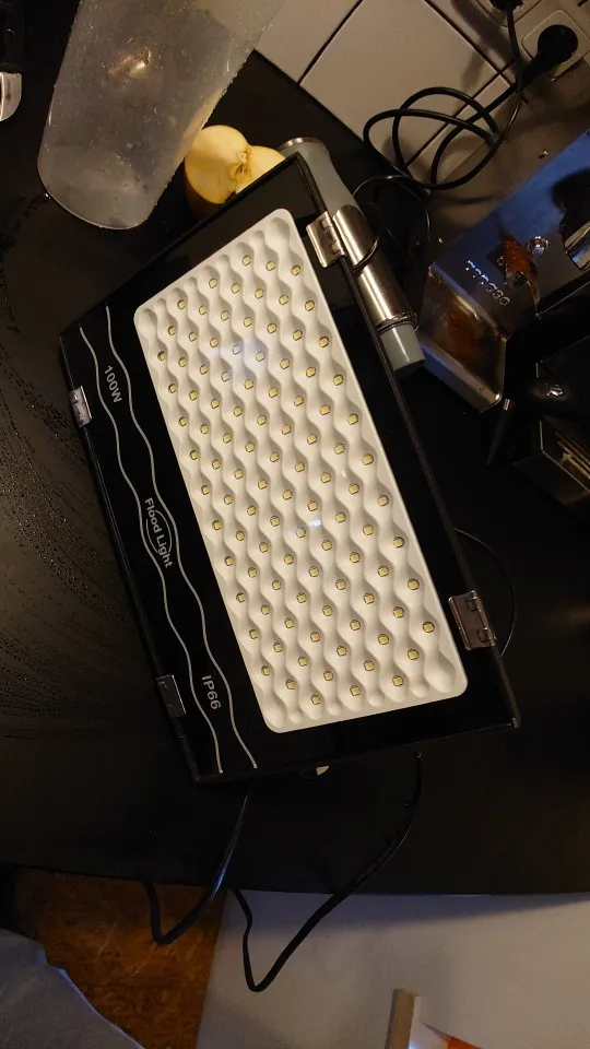 100 Вт очень легкий, см. Фотографии, сделанные с такими же характеристиками. Только то, что делает его лучше, это то место, где кабель выходит. Он не может выдержать твердый, потому что он внизу. Если вам нужна пленка с этим светом, Проверьте частоту кадров! И диммер будет отличным.